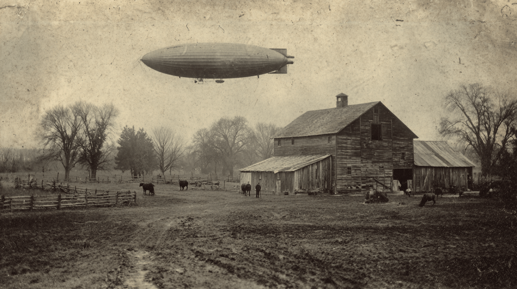 It was a chilly March day in 1897 on a farm outside of Sioux City, Iowa. The owner of the farm, Robert Hibbard, walked out of his barn and stopped short. What in the world was this? Was he seeing things? Floating above his barnyard was a huge airship. That’s what he called it. Probably today we would describe it as a steampunk version of the Goodyear blimp. Not something that Robert had ever seen drifting above his cows.