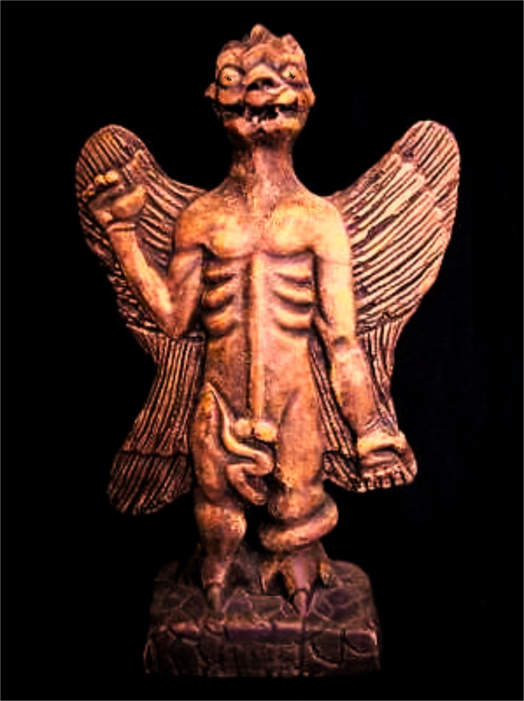 Before we look deeper into this weird phenomenon we should ask a question. Have hideous winged beings appeared in the past that terrified people? Well, they are everywhere in ancient mythology. We could spend hours listing them. Here are just a few. First, we should mention Pazuzu. In Mesopotamia, he was king of the wind demons. Pazuzu actually made it into a Hollywood film as the evil spirit confronted in The Exorcist. Some have believed that he is the Mothman flying around Chicago. Then there is the winged Egyptian goddess Nut with her flying snake goddesses. Snake worship was very popular in ancient Egypt. In fact, snake deities have been found around the world. How about the flying, snake-footed monster Typhon of Greek mythology, one of the most evil and powerful of all the false deities. For those who like batman we have Camazotz, the Mayan bat god of evil and death who lives, where else, in a bat cave, I’m sure with a lot of supernatural guano. Jump to Finland and we find Loviatar winged goddess of death and disease. I wonder what sacrifices you had to make to keep her away from your family. Of course, we can’t leave out Kukulkan vile, feathered, flying serpent of Chichen Itza in the Yucatan. Several years ago my family and I stood at the foot of his hideous temple where thousands of humans were sacrificed. Rivers of blood poured down the steps. We could go on and on. I want propose that what has been called Mothman is nothing but a lesser manifestation of those ancient monster deities. Imagine that the creature we call Mothman appeared to vulnerable, primitive people. What would they do? In their terror, they would worship him. In our day, we build tourist trinket shops.