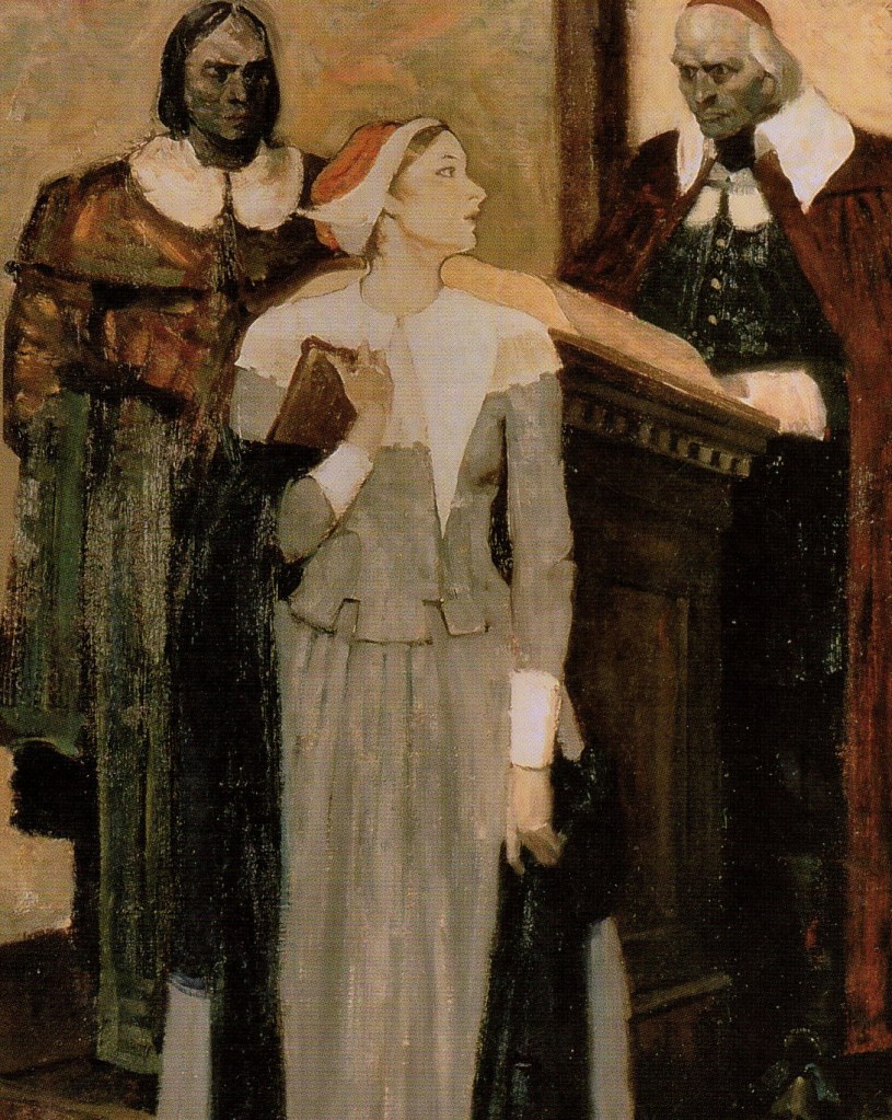 When she walked out of the meeting house where her sentence had been read, Mary Dyer walked with her, holding her hand in support. While all of this was going on, word got out that Mary had birthed a monster. In his zeal to further prosecute the midwife, Puritan Governor John Winthrop had that poor, tiny body exhumed. Then he wrote a vile, detailed description of the deformity and published it in a book. It is so evil that I refuse to share it with you. His purpose was to inform the world about all the heretics who had infected the holy Puritan community. In his despicable description, the man strongly implied that witchcraft had been involved in the tragic birth of this child.
